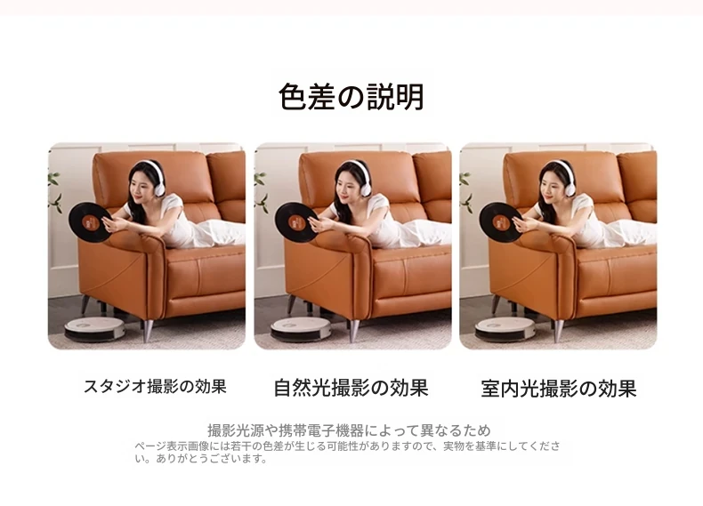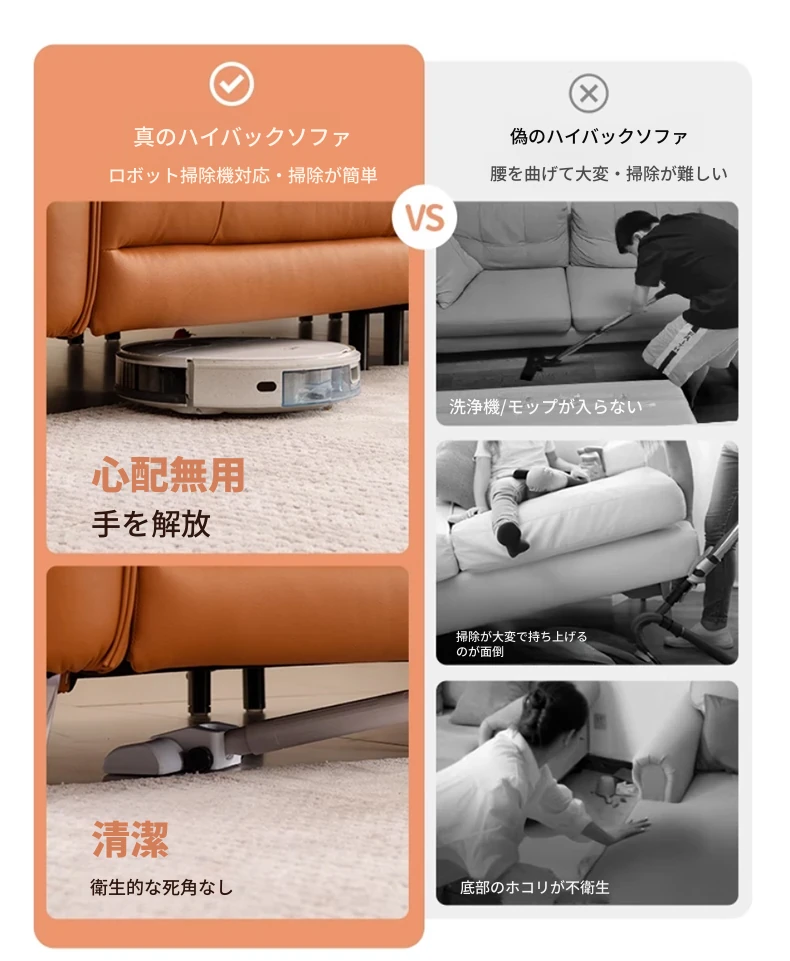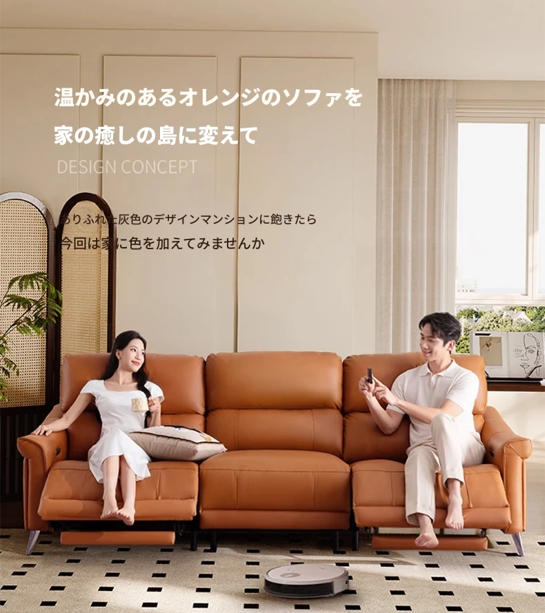 【壁に寄せない-スイープロボット】2.62M サンセットオレンジ-三人掛け二重電動