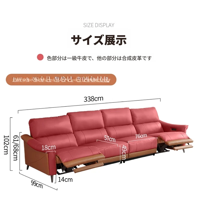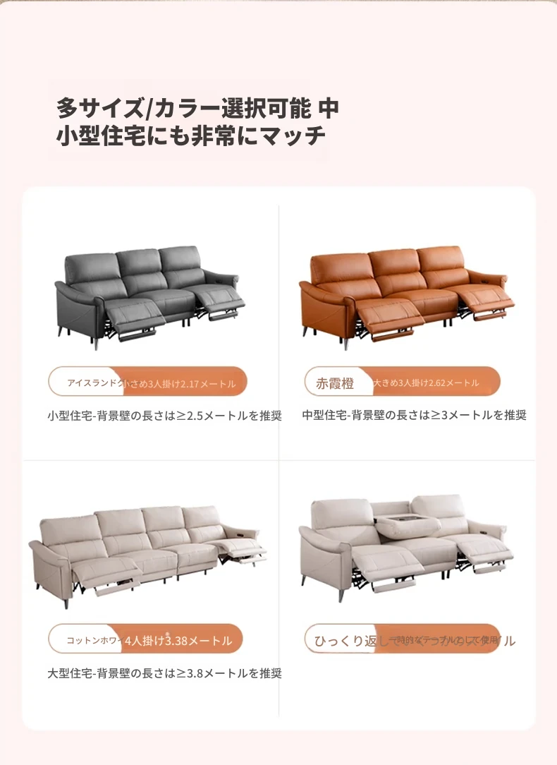 【壁に寄せない-スイープロボット】3.38M サンセットオレンジ-四人掛け二重電動