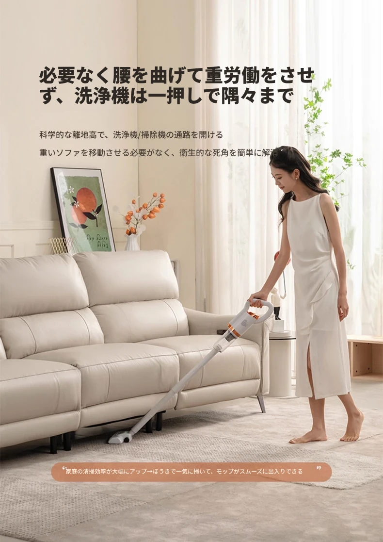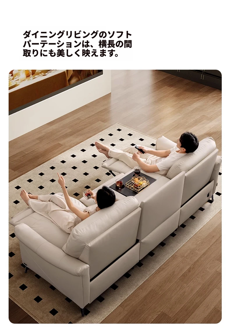【壁に寄せない-スイープロボット】2.17M コットンホワイト-小三人掛け二重電動