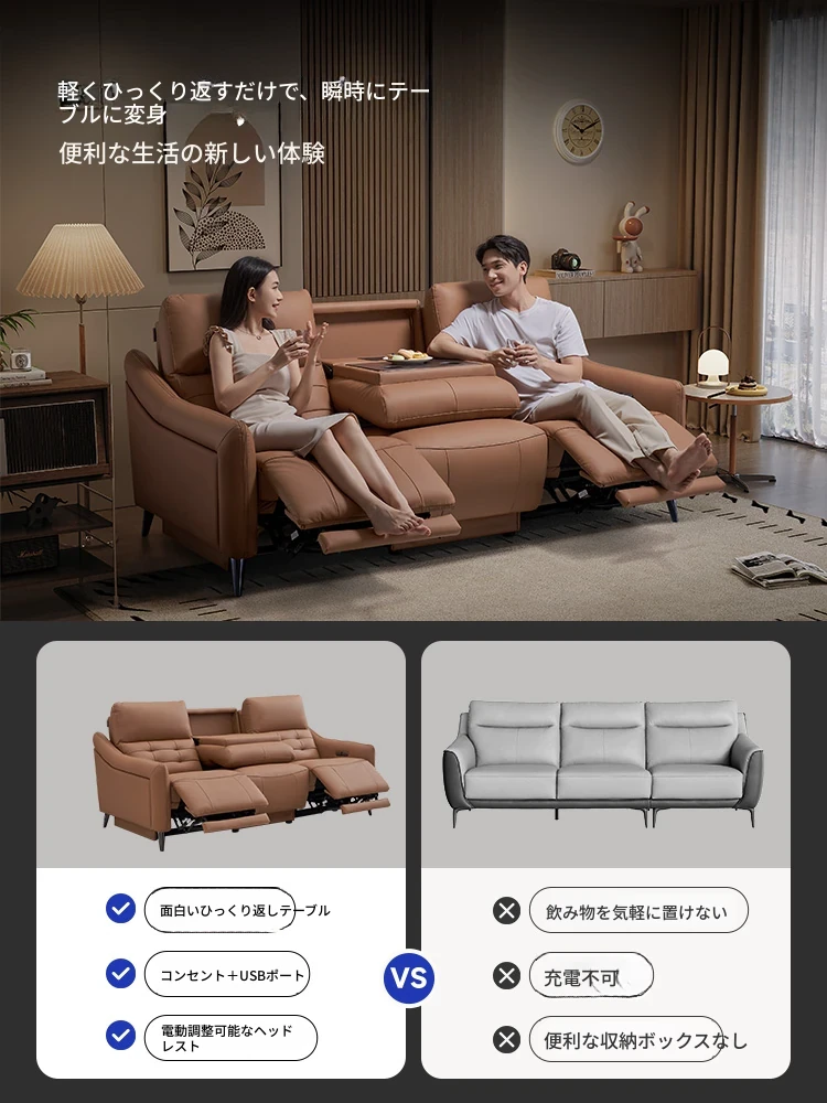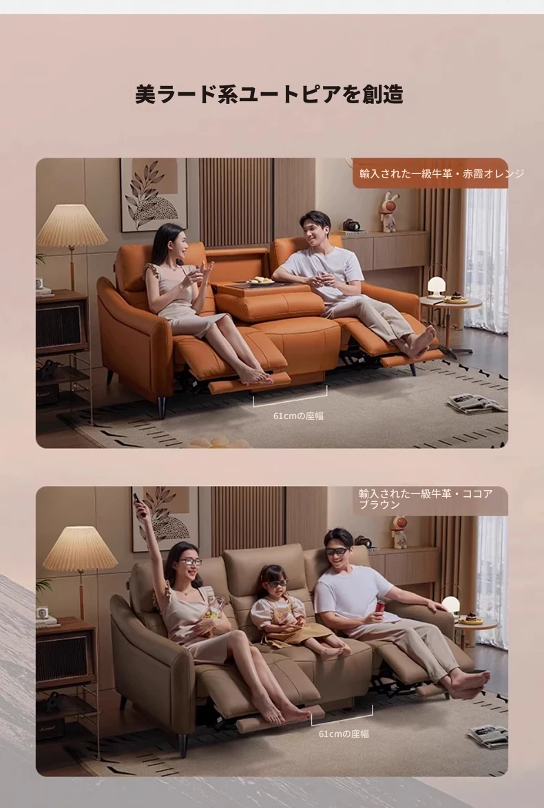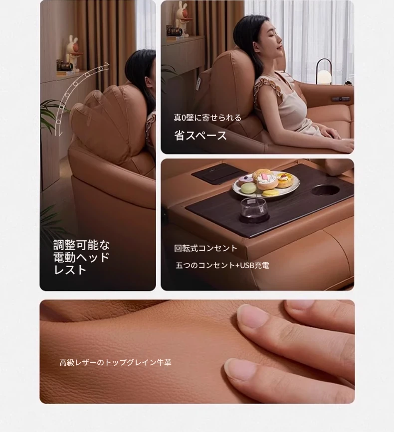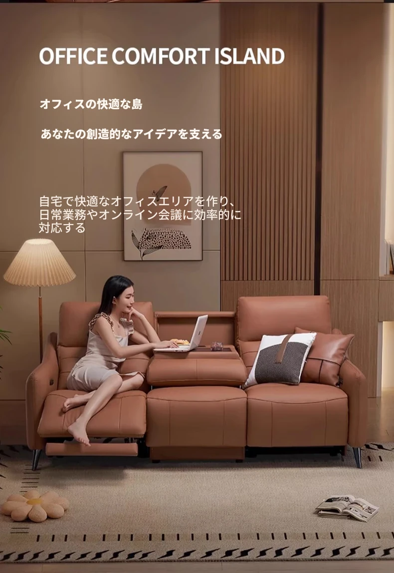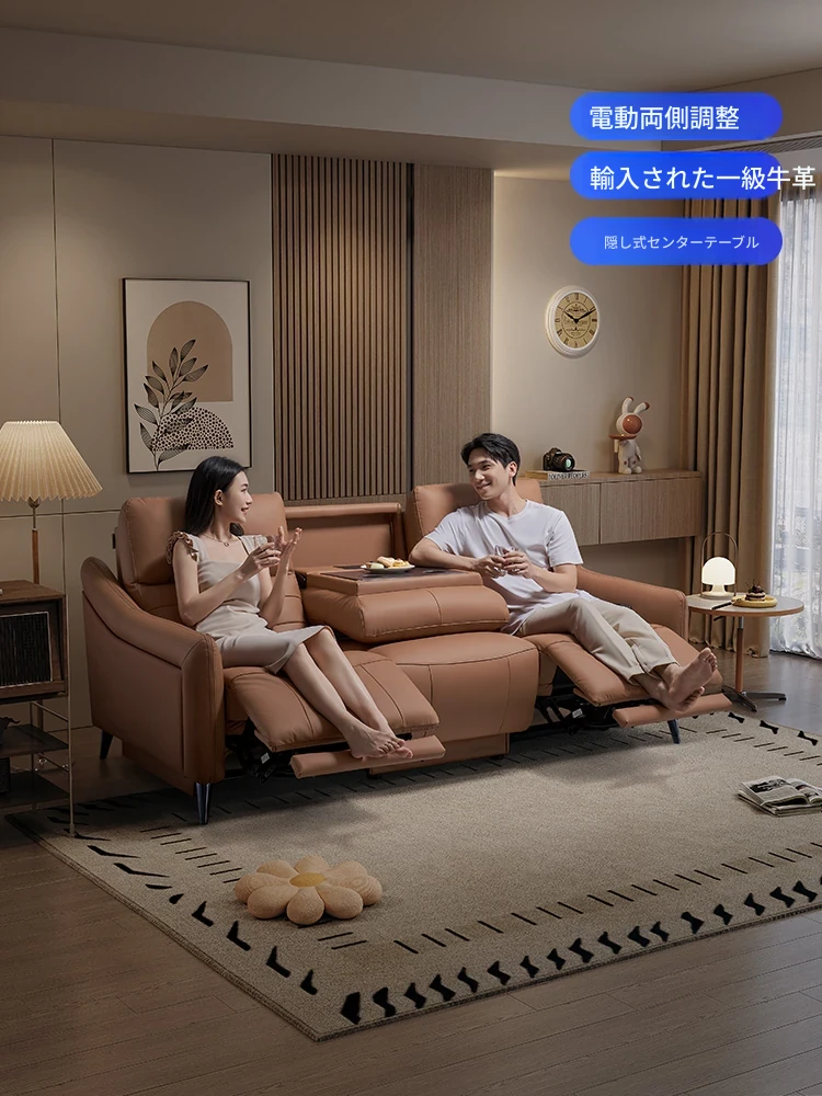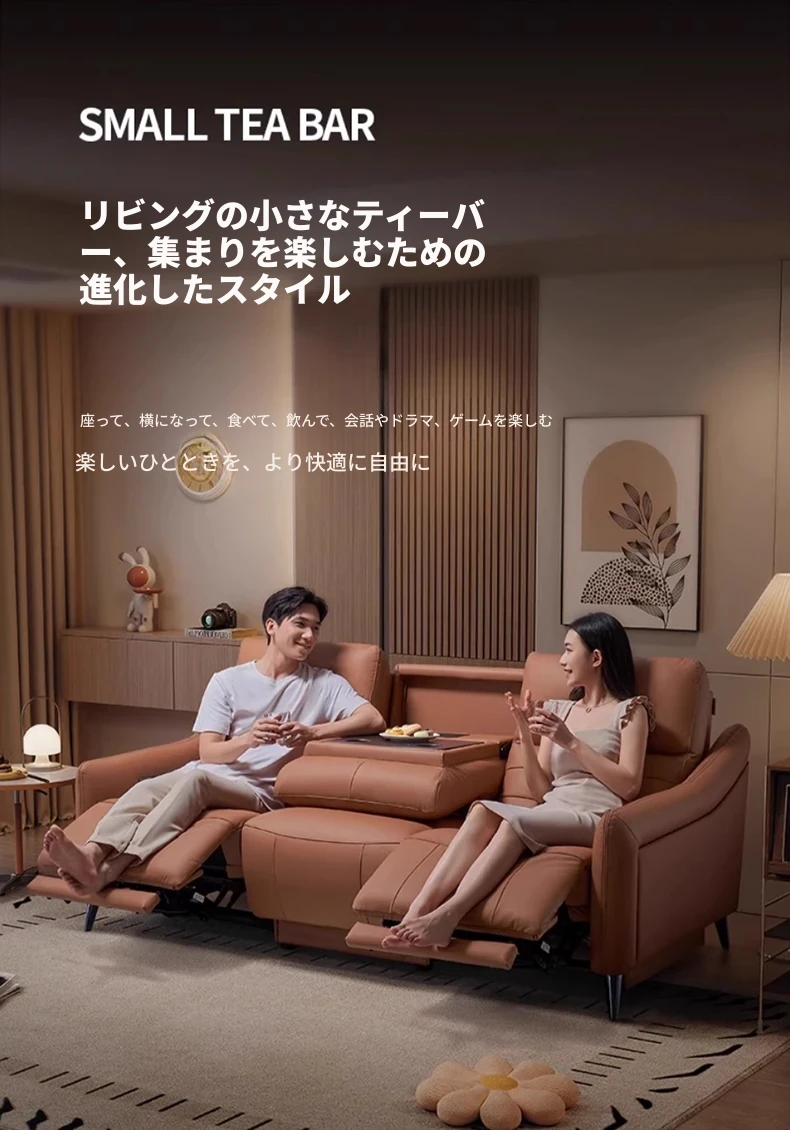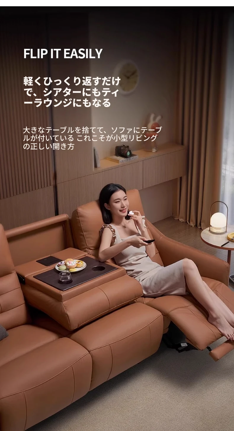 芝华仕プレミアムシアターソファ本革電動調整可能!映画館気分を自宅で楽しめる、ティー托付きの快適リビングルームソファ40043。贅沢なひとときをお届けします!