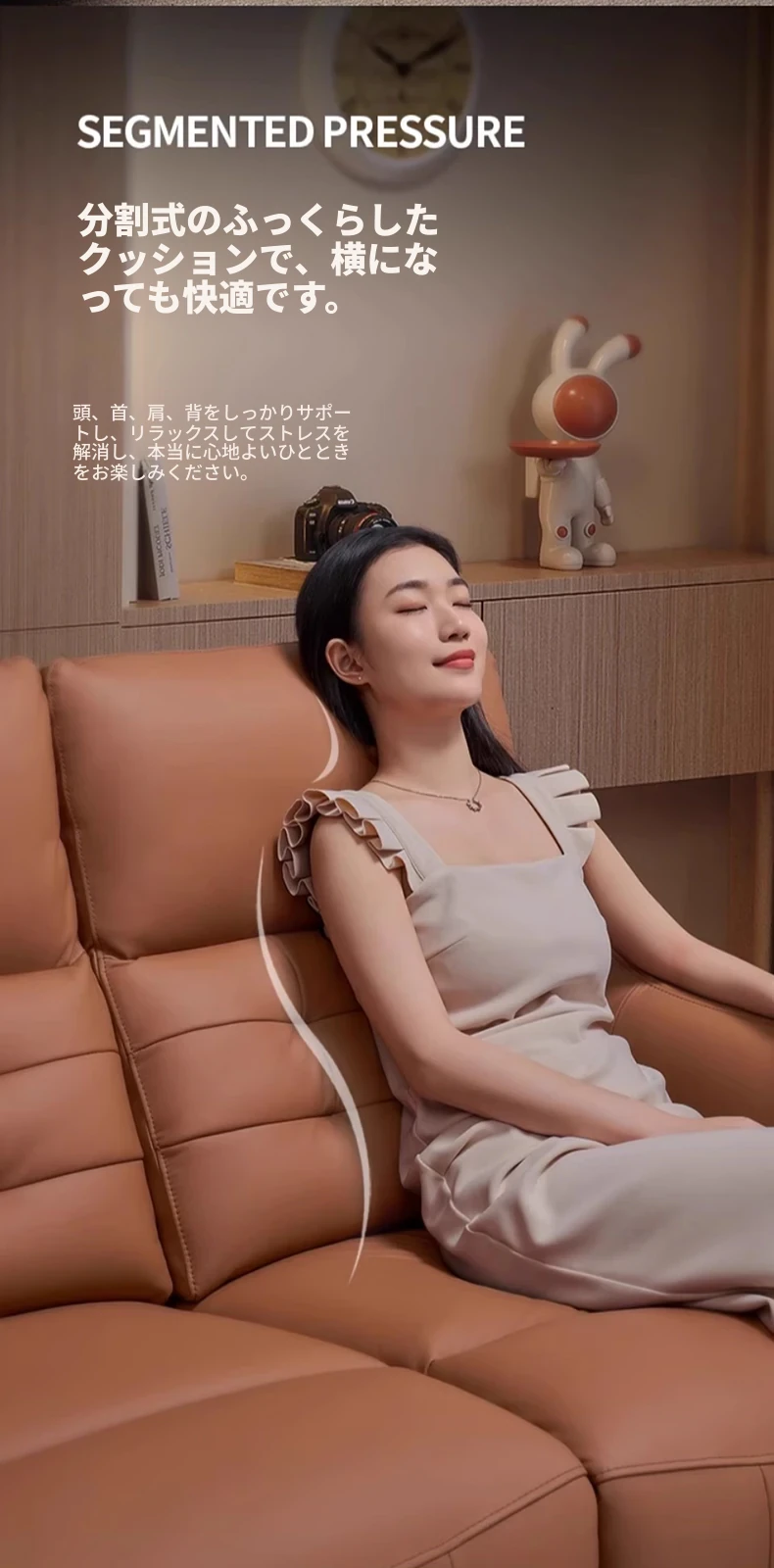 【2.69メートル ラグジュアリーセミアニリンレザー】アラビアベージュ-4人掛け+リクライニングテーブル(2電動)